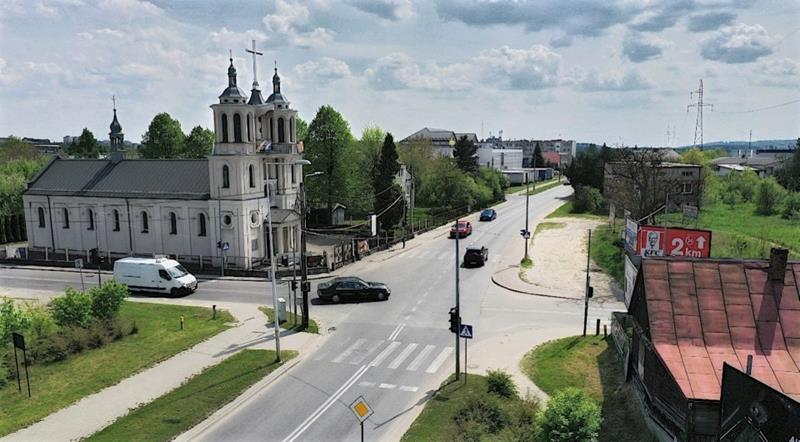 ○ Kielce, Malików: Istniejące klasyczne skrzyżowanie z sygnalizacją świetlną ulicy Batalionów Chłopskich z ulicą Wystawową♂ jest dosyć dysfunkcyjne. Jest na nim bardzo duży ruch i to z udziałem ciężkich pojazdów transportowych. Projekt zakłada stworzenie ronda turbinowego. / fot. Fot. Jarosław Kubalski / Radio Kielce♂