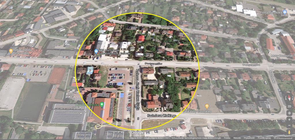 ○ Czy sygnalizacja świetlna oraz nowe pasy ruchu na skrzyżowaniu ulic Partyzantów i Grotta wyeliminują skutecznie korki w tym miejscu Buska? / grafika: google.com/maps♂