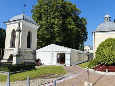 W Busku-Zdroju, przy kościele Niepokalanego Poczęcia Najświętszej Maryi Panny stanęła… prowizoryczna świątynia polowa. Może służyć wiernym z tamtejszej parafii podczas remontu. Związane jest to ze skomplikowanymi pracami przy zabytkowej posadzce.