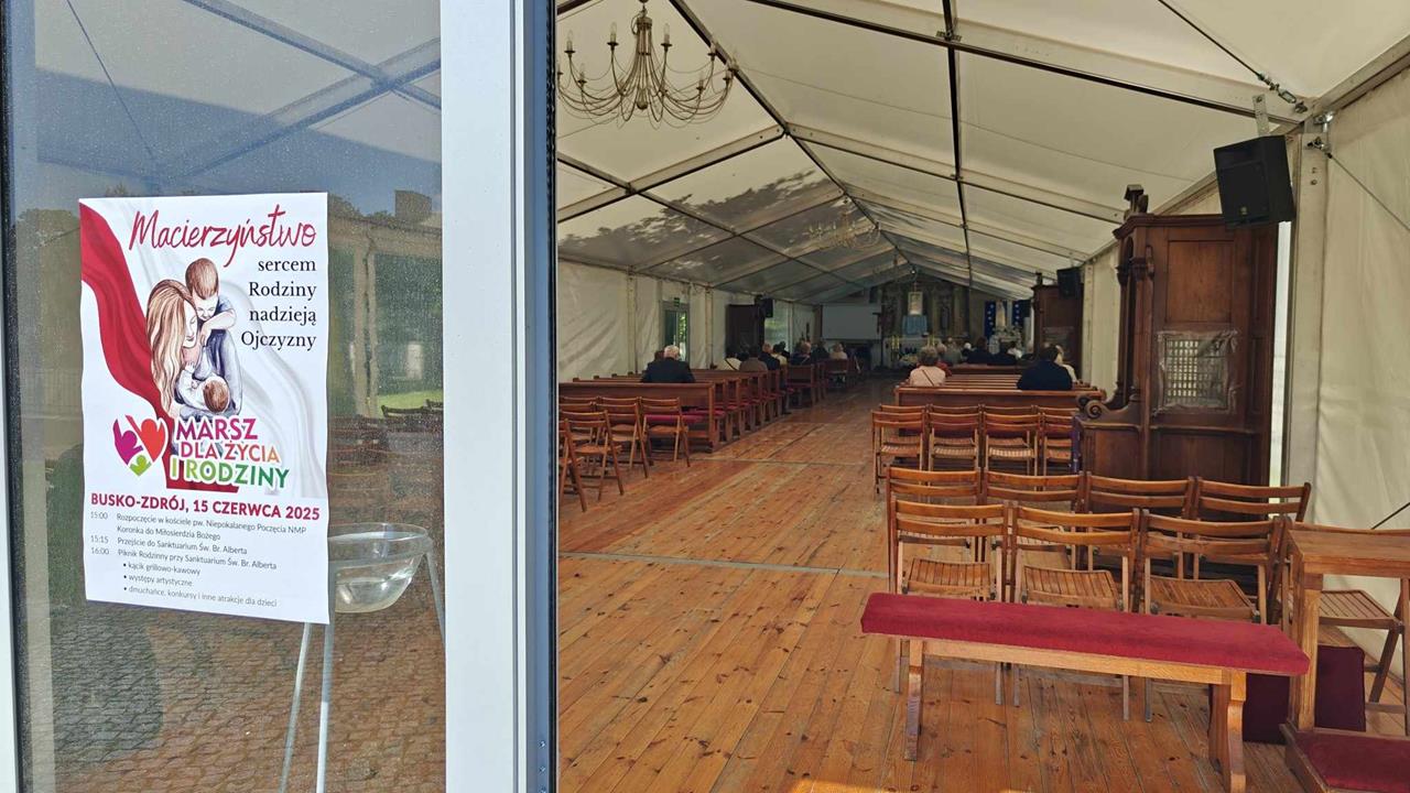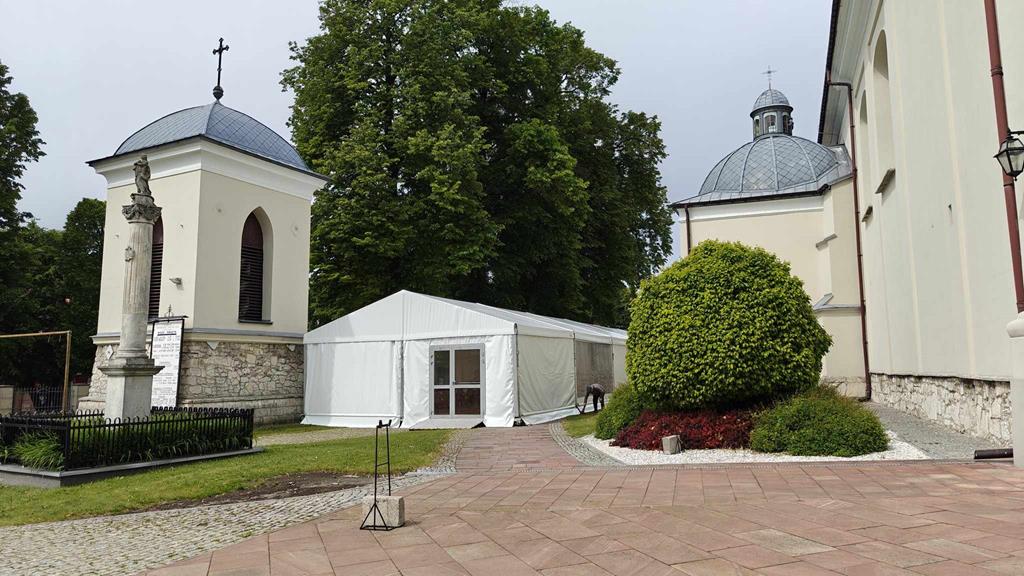 W Busku-Zdroju, przy kościele Niepokalanego Poczęcia Najświętszej Maryi Panny stanęła… prowizoryczna świątynia polowa. Może służyć wiernym z tamtejszej parafii podczas remontu. Związane jest to ze skomplikowanymi pracami przy zabytkowej posadzce.