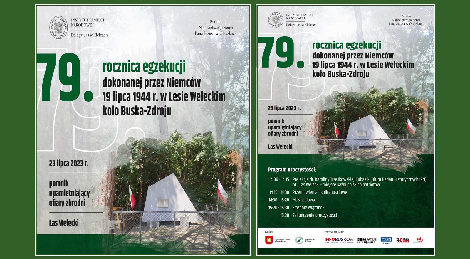 ? W niedzielę 23 lipca 2023 w Lesie Wełeckim koło Buska-Zdroju odbędą się uroczystości upamiętniające ofiary zbiorowej egzekucji dokonanej przez Niemców 19 lipca 1944 r.
