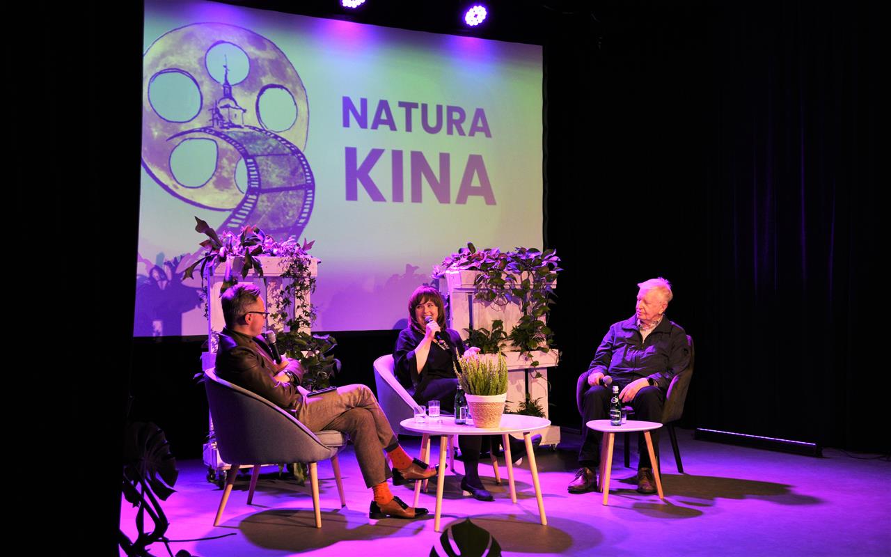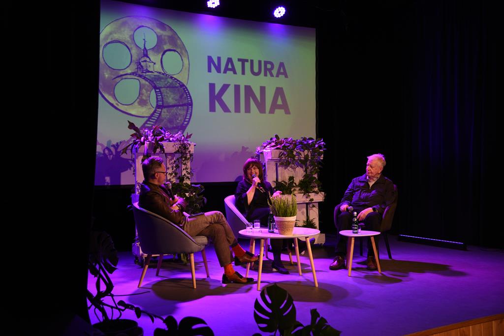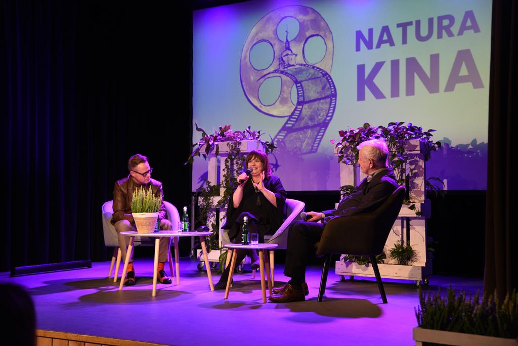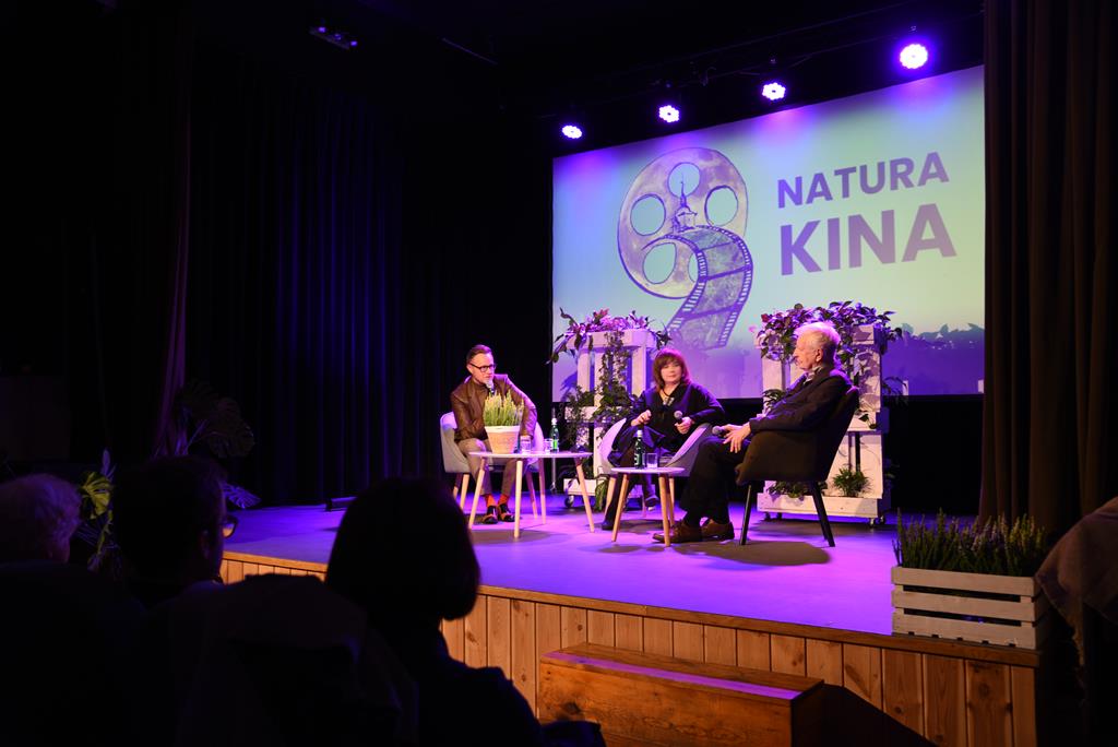 ○ 22.09.2022. Pińczów. Festiwal Filmowy „Natura Kina”. Na zdjęciu (od lewej): filmoznawca Łukasz Maciejewski’, aktorka Edyta Jungowska’ i pochodzący z Pińczowa reżyser Andrzej Barański’. / Fot. Jarosław Kruk infoBusko.pl