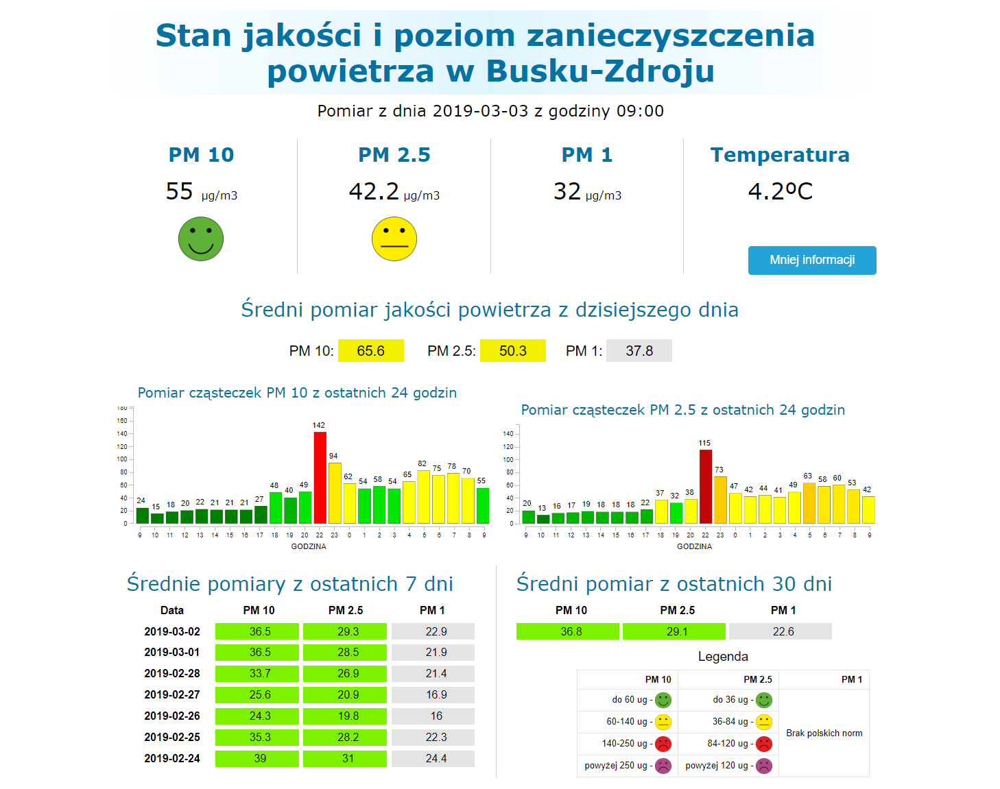 W sobotę, 2 marca 2019, tablica pomiarowa na budynku buskiego UMiG niestety „zapłonęła” na czerwono…