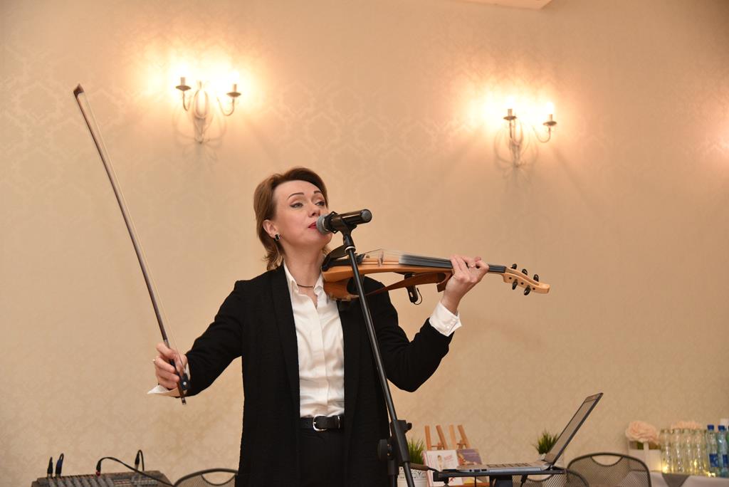 ○ O duchowy nastrój spotkania zadbał ks. dziekan Andrzej Jankoski’, wspaniały muzyczny klimat wieczoru stworzyła artystka z Ukrainy, skrzypaczka Żanna Żarkowa (ang. Zhanna Zharkova)’. / fot. Jarosław Kruk infoBusko.pl