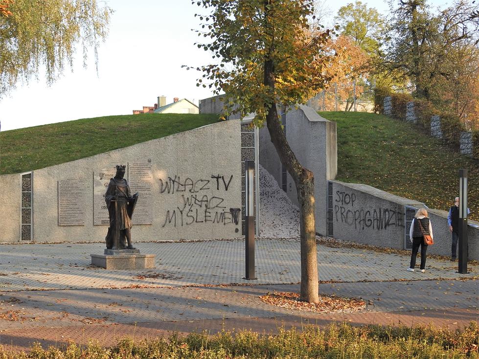 Graffiti murze oporowym Bycoka, pod bokiem pomnika księcia Leszka Czarnego. Busko-Zdrój, 27.10.2020 / fot. Jarosław Kruk; infobusko.pl