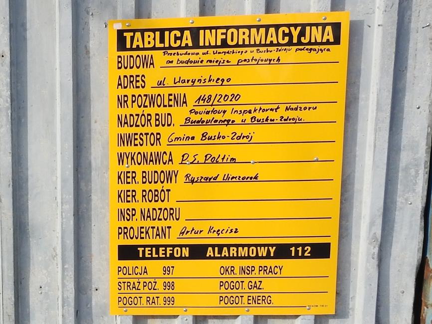 Oficer Prasowy KPP w Busku-Zdroju Tomasz Piwowarski informuje, iż rano stwierdzono około 12 napisów,  niektóre z nich o wulgarnej treści. Policja przyjęła ustne zawiadomienie o popełnieniu przestępstwa od przedstawiciela Urzędu Miasta i Gminy Busko-Zdrój, który oszacował straty na kwotę ponad 8,5 tysiąca złotych. Wstępnie prowadzone jest postępowanie w kierunku uszkodzenia, zniszczenia mienia. Zabezpieczono już nagrania z monitoringu. Trwa ustalanie sprawców. Przestępstwo to zagrożone jest karą od 3 miesięcy do 5 lat pozbawienia wolności. O wysokości kary zadecyduje sąd.