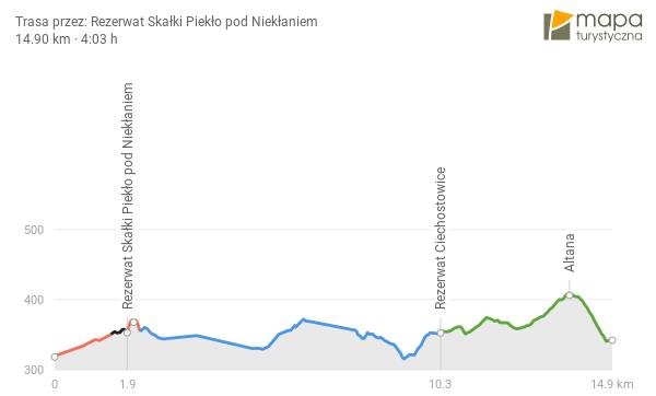 Czas przejścia: ok. 4 godz., Dystans: ok. 15 km, Suma podejść: 232 m, GOT: 15