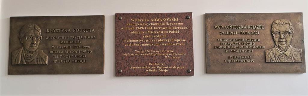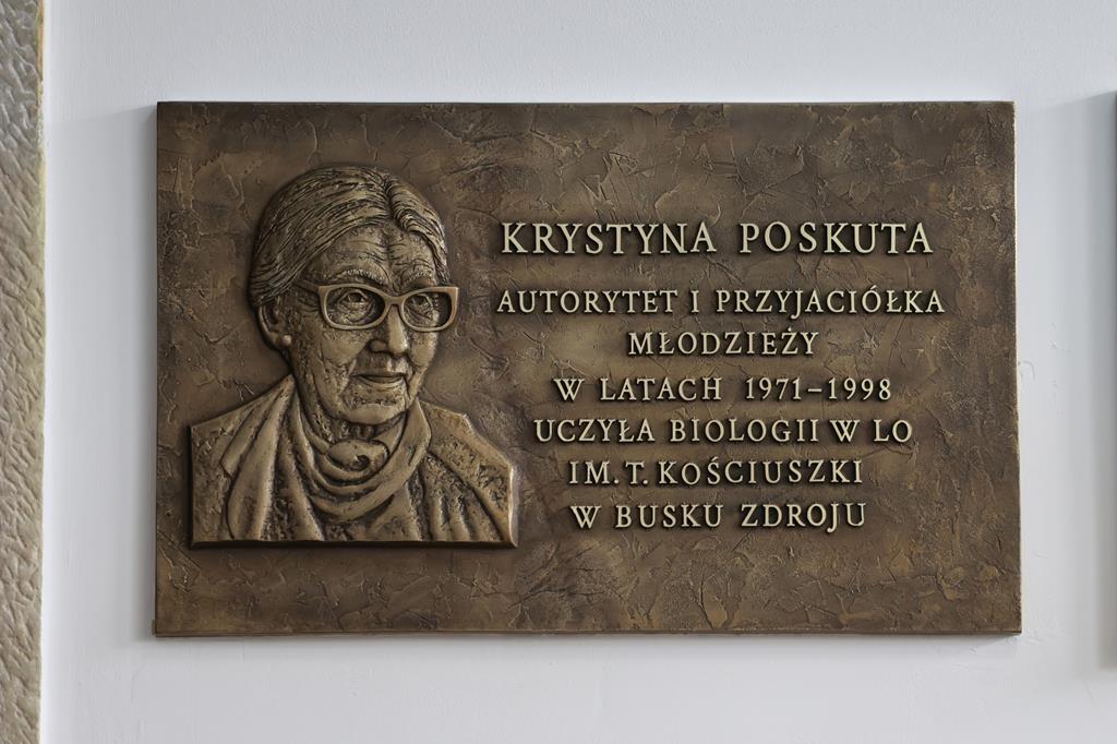 O godzinie 15:00 odbyło się uroczyste odsłonięcie tablic pamiątkowych poświęconych dwóm nauczycielkom. Tablice zostały poświęcone paniom Krystynie Poskucie, nauczycielce biologii oraz Agnieszce Książek, nauczycielce matematyki. To symboliczne wydarzenie miało na celu upamiętnienie ich znaczącego wkładu w edukację młodzieży i oddanie hołdu za lata poświęcone pracy w I Liceum Ogólnokształcącym im. T. Kościuszki w Busku-Zdroju.