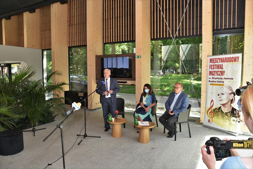 O Międzynarodowym Festiwalu Muzycznym im. Krystyny Jamroz na zorganizowanej konferencji w Domu Zdrojowym przy Tężni mówili: Burmistrz Miasta i Gminy Busko-Zdrój Waldemar Sikora, Dyrektor Artystyczny Festiwalu Artur Jaroń oraz p.o. Dyrektora Buskiego Samorządowego Centrum Kultury Maria Wiśniewska.