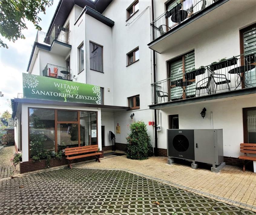 Sanatorium Zbyszko’ w Busku-Zdroju ogrzewają dwie monoblokowe pompy ciepła VESTA po 16 kW każda. W takim miejscu oprócz dużej wydajności wymagana jest cicha praca urządzeń, tak aby nie zakłócać spokoju wypoczywającym gościom. / źródło: ZMK SAS Sp. z o.o.♂