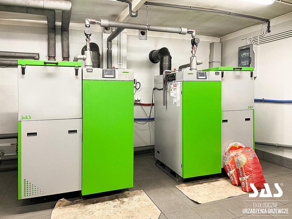 W budynkach o większym lub zmiennym zapotrzebowaniu energetycznym kotły peletowe można z powodzeniem łączyć w układy kaskadowe składające się z dwóch lub więcej urządzeń. / źródło: ZMK SAS Sp. z o.o.♂