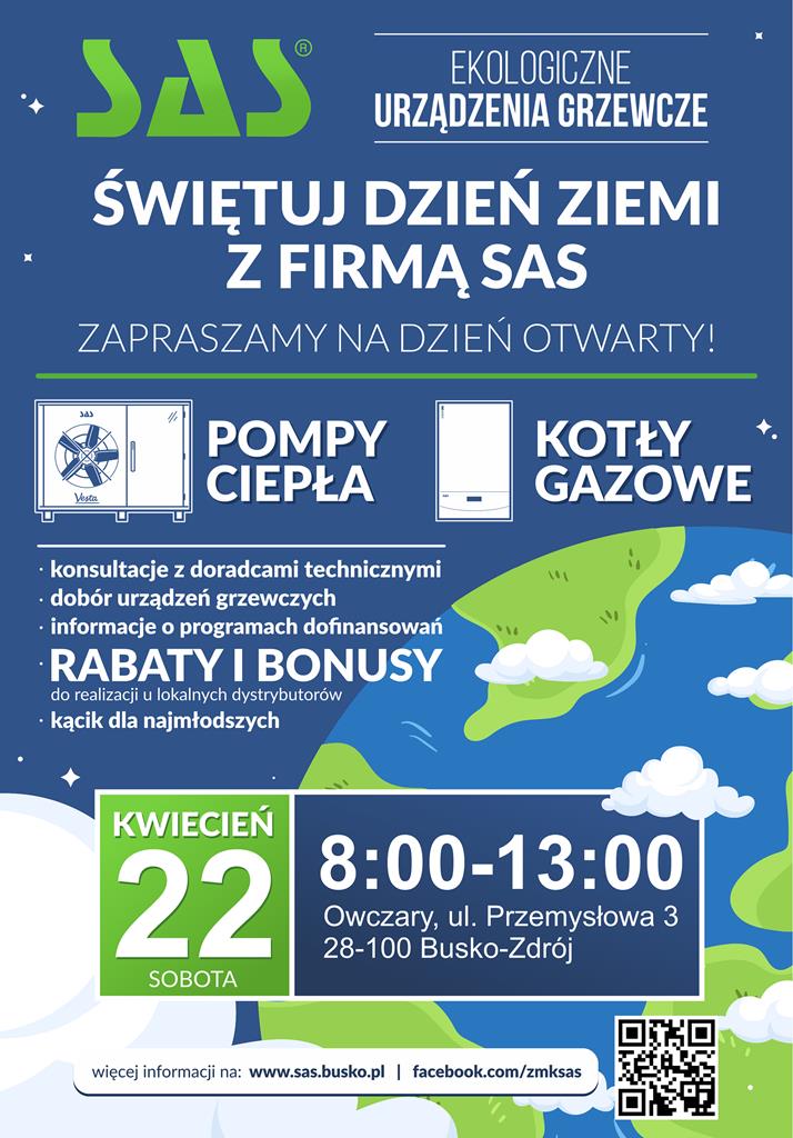 W sobotę 22 kwietnia na całym świecie obchodzony będzie Międzynarodowy Dzień Ziemi’. Z tej okazji w firmie SAS organizujemy Dzień Otwarty dla mieszkańców Buska-Zdroju i okolic oraz wszystkich gości i kuracjuszy odwiedzających nasze miasto.