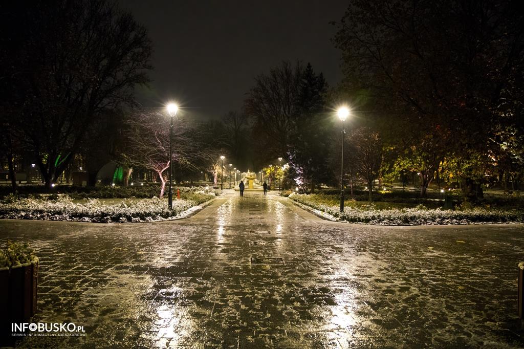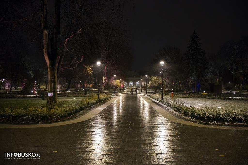 Wczoraj, 19 listopada 2023 r., w Busku-Zdroju spadł pierwszy śnieg tej jesieni. Ten biały zimowy akcent zachęcił pińczowianina, pana Piotra Młynka do zrobienia serii malowniczych kadrów buskiego Zdroju, plastycznie ukazujących klimat wybranych miejsc tego listopadowego niedzielnego wieczoru.