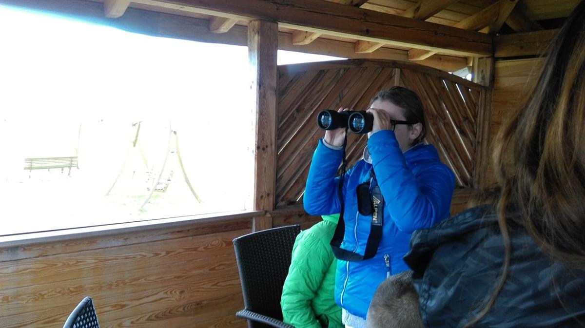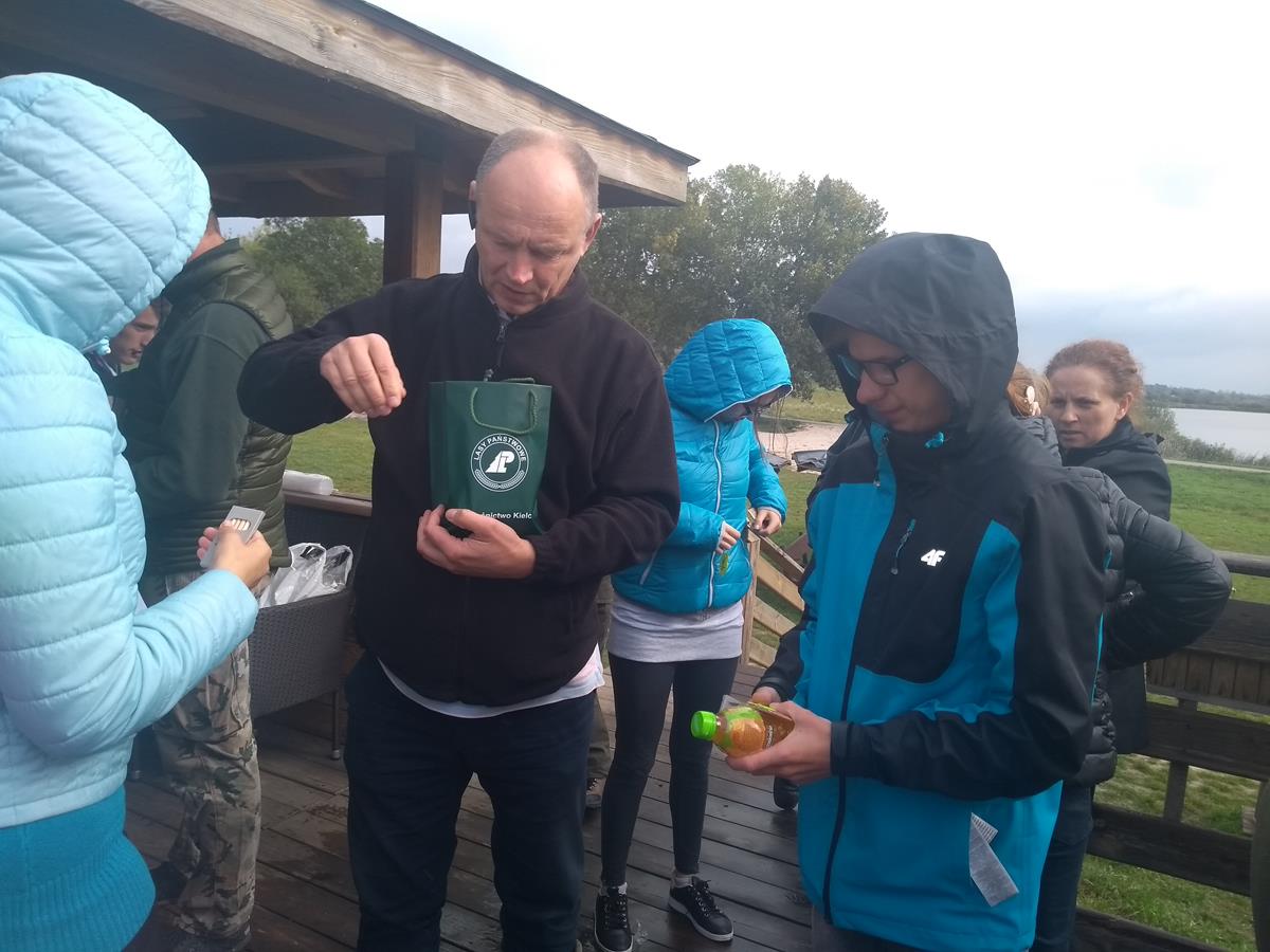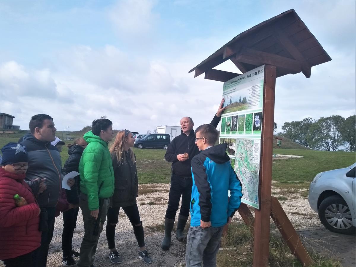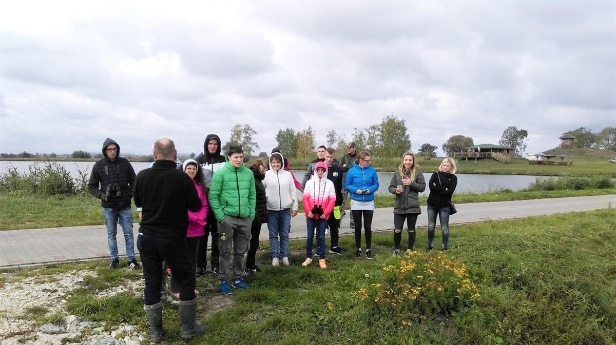 Dla nas – zagorzałych obserwatorów przyrody, wielką gratką było również poznanie różnych gatunków ptaków, często egzotycznych, zamieszkujących tereny stawów lub odwiedzających je w czasie swoich wędrówek. Większość znaliśmy, ale o niektórych, np. o szablodziobie , batalionach, czernicach czy oharze usłyszeliśmy po raz pierwszy. Swoją wiedzą o roślinach, zwierzętach i geologii w atrakcyjny i przystępny sposób podzielił się z nami również pan Jarosław Kruk, myśliwy KŁ Orzeł, który w 2-giej części „wyprawy” oprowadził nas po terenie gospodarstwa. Przy kilku tablicach informacyjno-edukacyjnych ustawionych w obrębie Ostoi, pan Jarosław zapoznał nas z ich treścią wzbogacając dodatkowo przekaz o wiele ciekawych informacji dodatkowych. Jego krótka lekcja o Górkach, Ponidziu i naturze niezwykle nam się podobała.