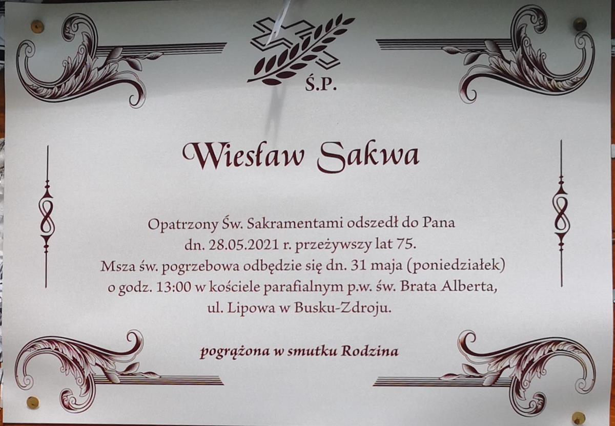 Zmarł Wiesław Sakwa doświadczony nauczyciel, pedagog, wieloletni wicedyrektor Zespołu Szkół Ponadpodstawowych im. Mikołaja Kopernika w Busku-Zdroju